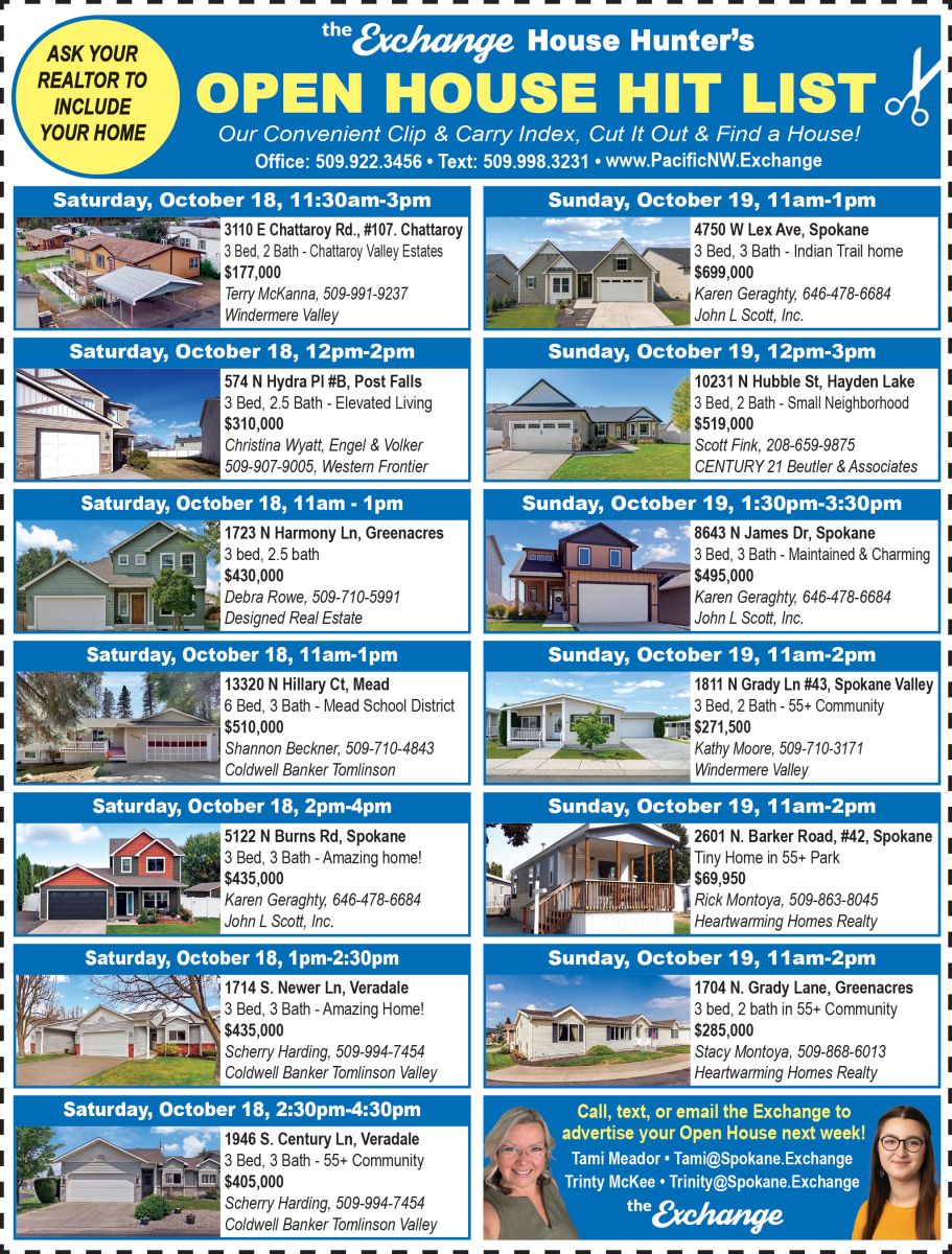 Call us at the Exchange to advertise your Open House next week!