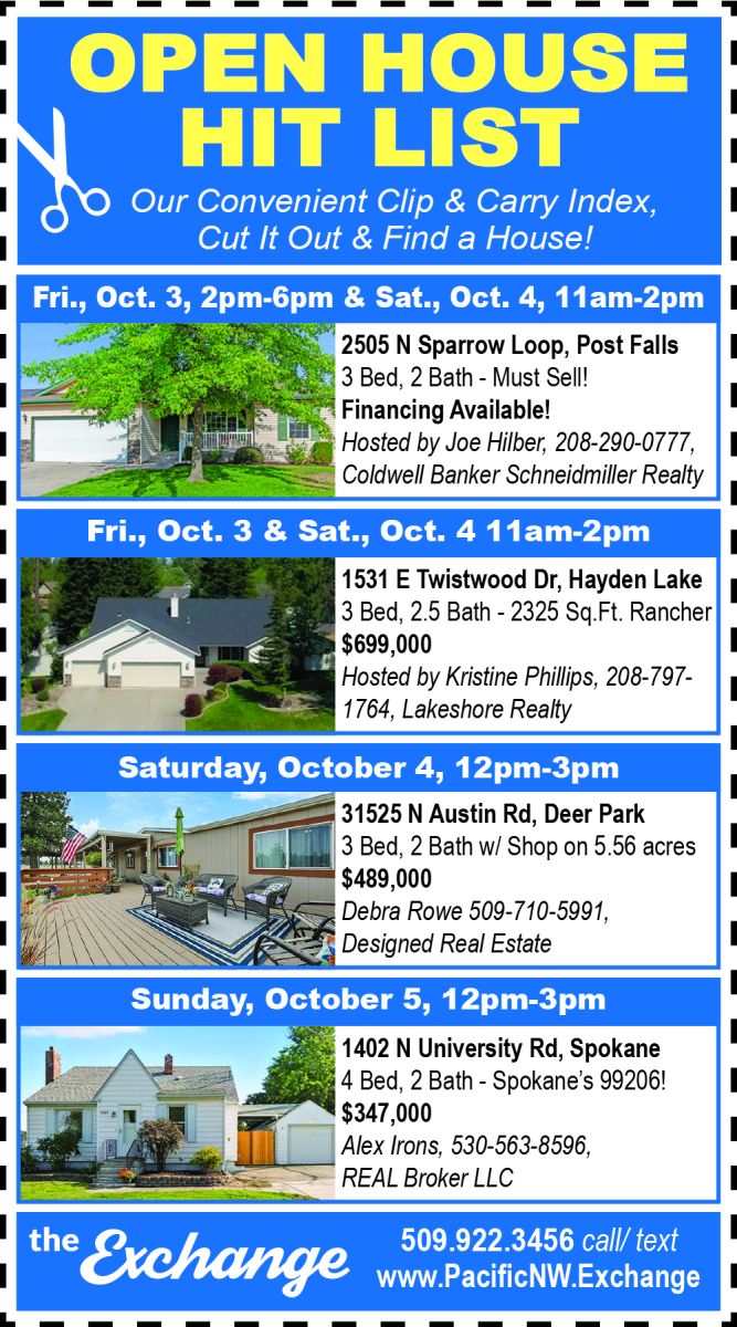 Spokane House Hunting OPEN HOUSE HIT LIST - Homes for Sale & Open Houses this Weekend!
